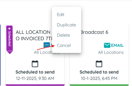 - What happens: The broadcast moves to “Cancelled.” You can’t send it again, but you can make a copy if you want.