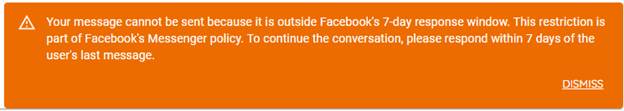 - If 7 days pass since the last message received from Facebook, the conversation times out