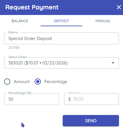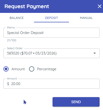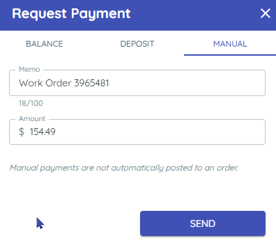 • Enter the amount, send the link, and manually apply the payment back in the DMS.