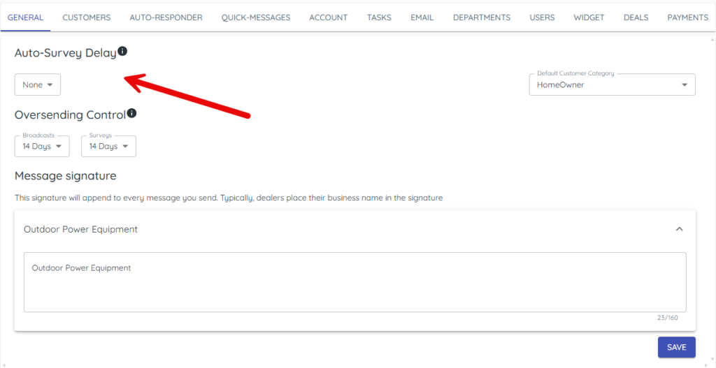 – For Auto survey delay, start with None or 1 day for fresher feedback.