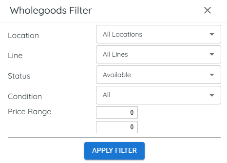 1) Filter by Location, Product Line, Status, Condition, and Price Range.