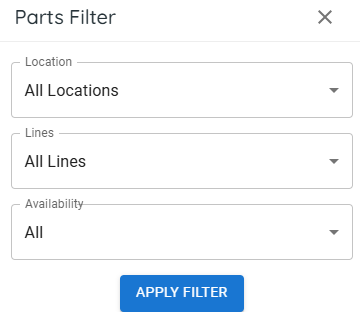 1) From the Parts tab filter by Location, Product Line, and Availability.
